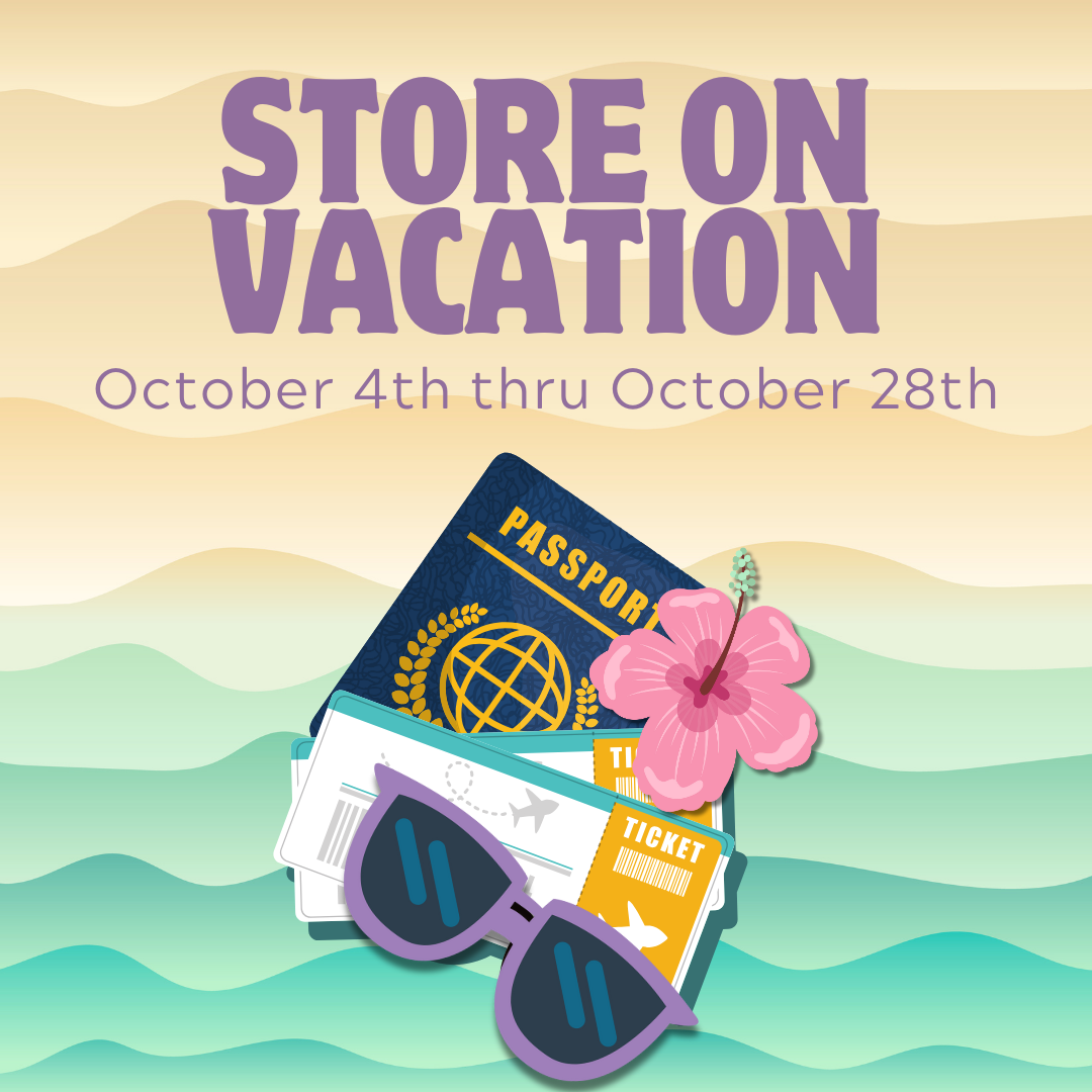 Zee is relaxing and soaking up some rays. You are welcome to peruse the store, but orders will not be fulfilled until after October 28th.